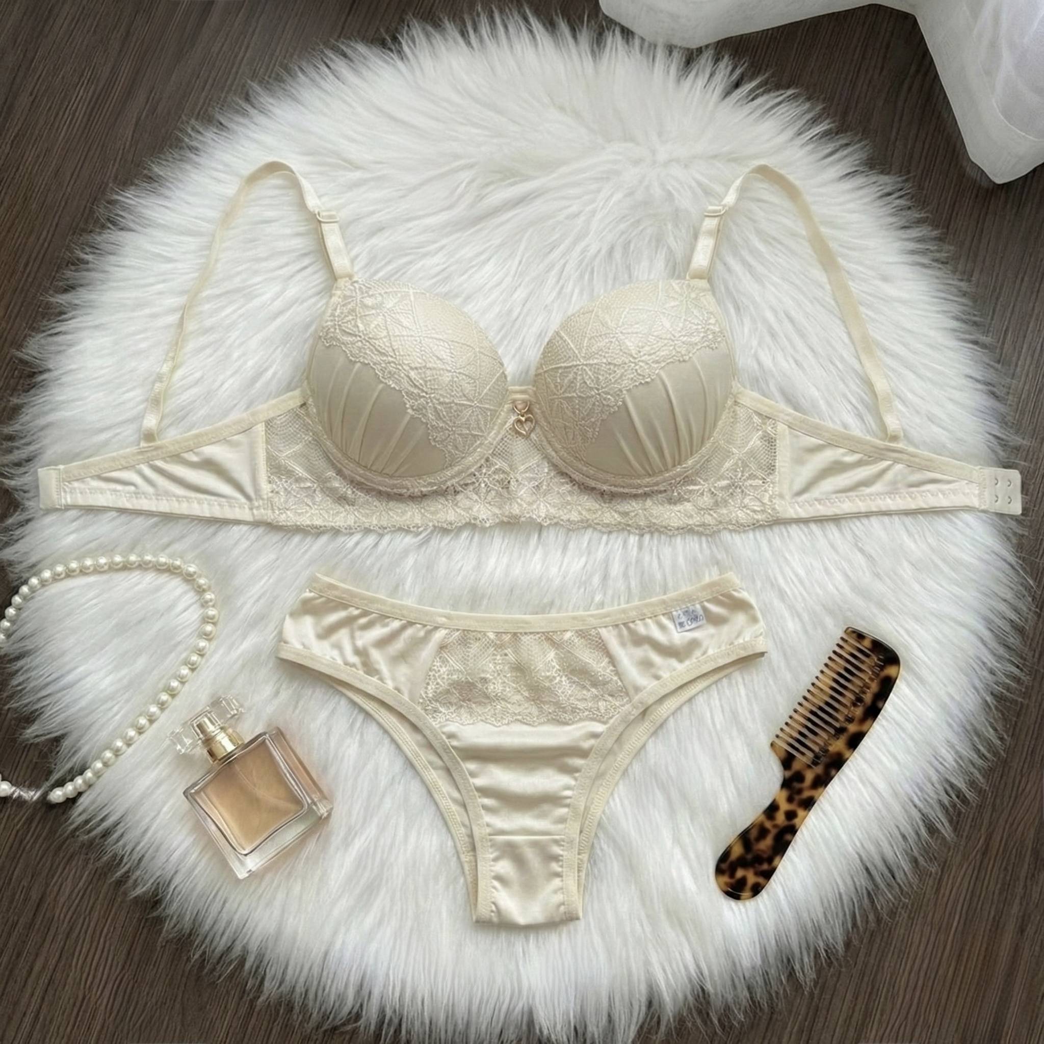 Um Toque de Luxo para o Seu Dia a Dia ✨ Descubra o poder de se sentir linda e confortável com o nosso novo conjunto. Uma peça pensada para a mulher que valoriza detalhes sofisticados sem abrir mão do bem-estar. O grande diferencial deste modelo é o sutiã com bojo drapeado, um acabamento em tecido plissado que traz volume visual e modernidade, finalizado com uma renda delicada no decote e na base que abraça o corpo. A calcinha acompanha a sofisticação, combinando a suavidade da microfibra com recortes em renda que valorizam o quadril com sutileza. Por que você vai amar: • Design Exclusivo: O efeito drapeado no bojo foge do básico, transformando a lingerie em uma peça de desejo. • Conforto Absoluto: Confeccionado em poliamida de alta qualidade, garantindo toque macio e "geladinho" na pele. • Ajuste Perfeito: Alças reguláveis e fecho seguro para sustentação ideal. • Saúde Íntima: Forro 100% algodão, essencial para a respiração da pele. Sinta-se segura e poderosa, seja para uma ocasião especial ou para elevar sua autoestima na rotina! 📋 Ficha Técnica e Composição Dados técnicos baseados na etiqueta do produto para garantir transparência com suas clientes: • Tecido (Microfibra): 90% Poliamida, 10% Elastano. • Renda: 90% Poliamida, 10% Elastano. • Forro: 100% Algodão (Antialérgico). • Detalhes: Pingente dourado central no sutiã; Bojo com acabamento drapeado; Calcinha com detalhe frontal em renda.