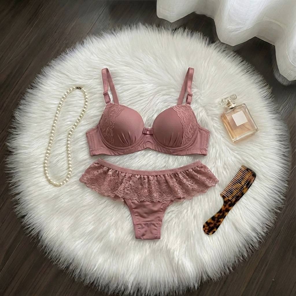 O sutiã encanta com seu acabamento em renda sobreposta no bojo, valorizando o decote com sofisticação. 😍 Já a calcinha é o grande destaque deste modelo: possui um lindo babado em renda (estilo saiote) em toda a cintura, trazendo movimento, beleza e um visual super feminino, além de ser extremamente confortável. ☁️👙