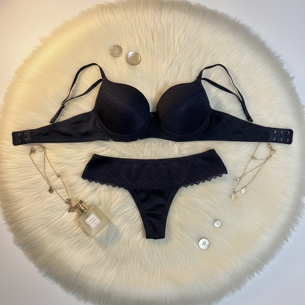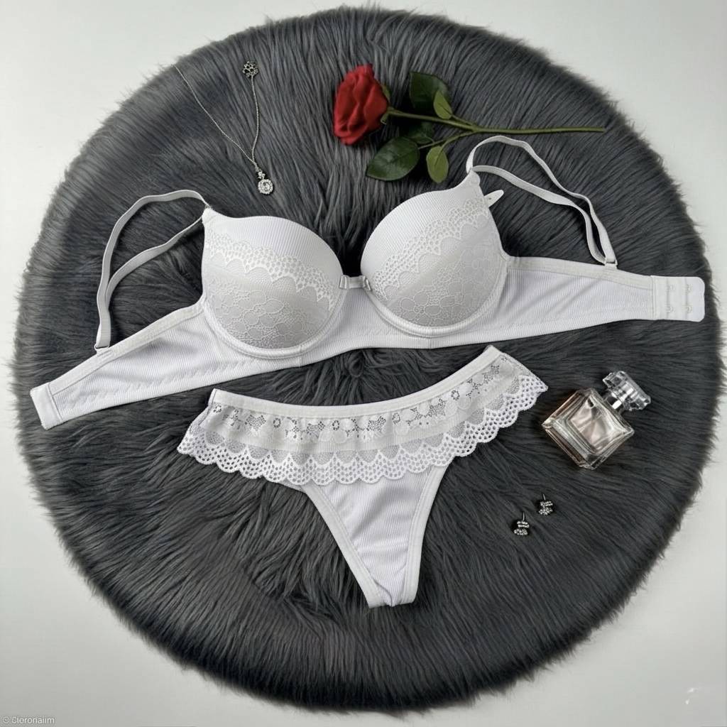 Conjunto Lingerie Canelado & Renda – Realce e Conforto