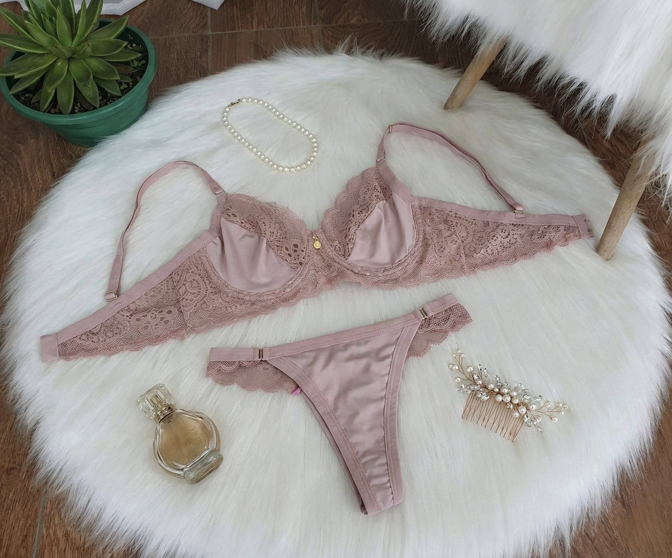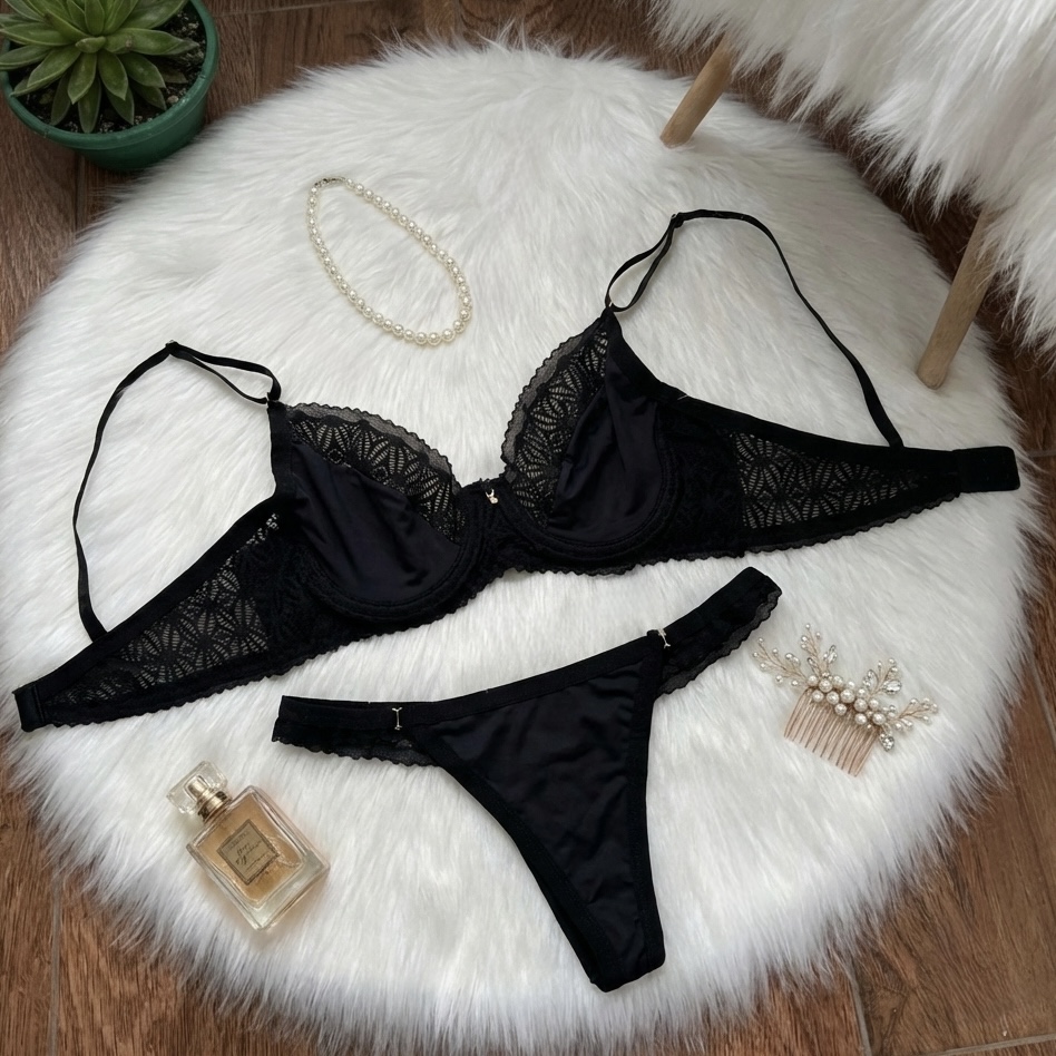 Composição 90% poliamida 10% elastano Renda 90% poliamida 10% elastano Forro 100% algodão Lingerie calcinha fio duplo com bolha nos bojos nos tamanhos p e m Vestimento Tamanho P veste 38 Tamanho M veste 40 Tamanho G veste 42