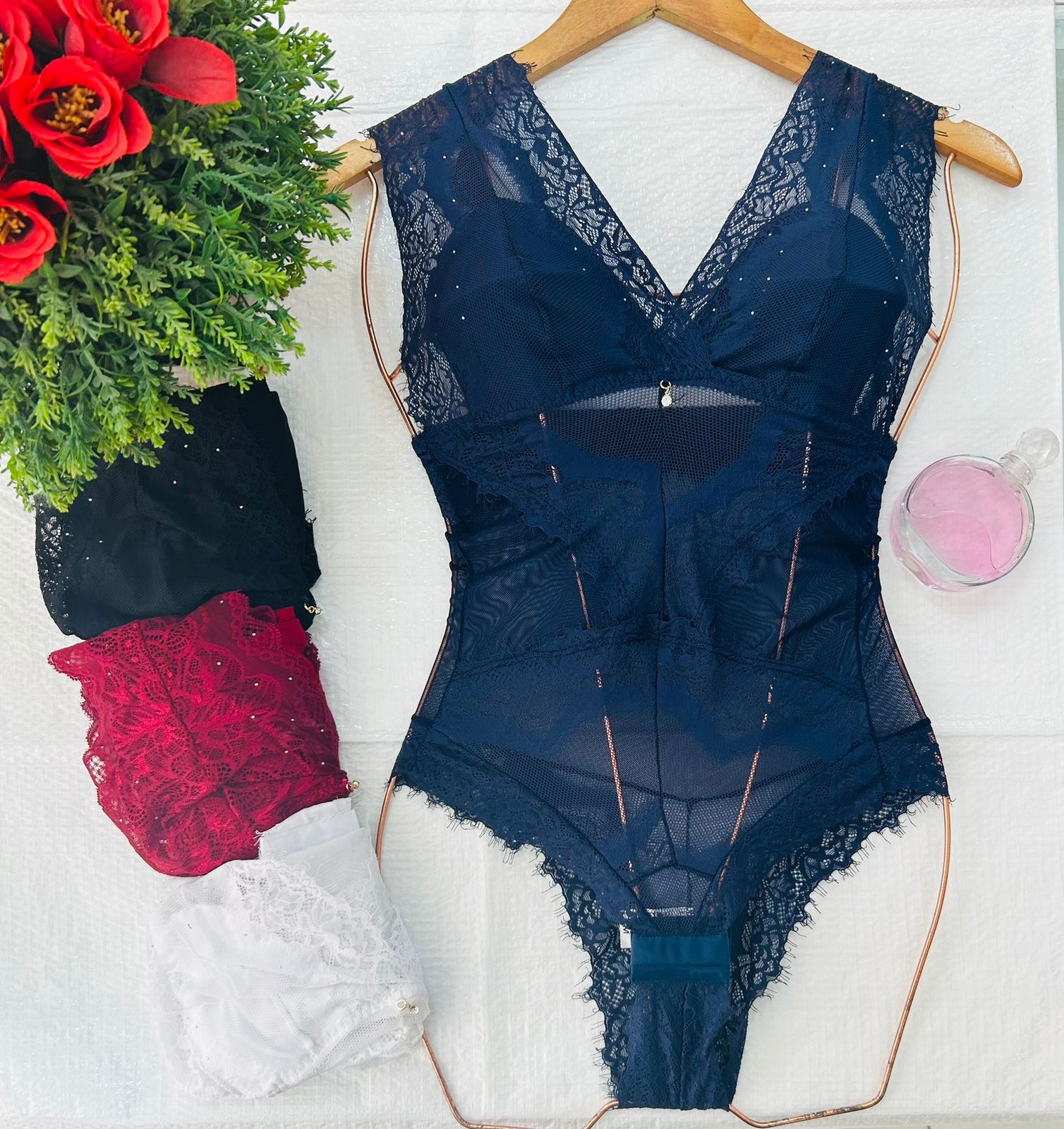 Body de Lingerie Madona – A Sedução em Três Cores Cause impacto e exale sensualidade com o nosso espetacular Body de Lingerie Madona! Esta peça única redefine a arte da sedução, combinando um design strappy (com tiras) ousado e recortes estratégicos que valorizam cada curva do seu corpo de forma dramática e poderosa. É a escolha perfeita para quem deseja se sentir absolutamente deslumbrante e confiante. Disponível nas Cores: • Vermelho: Vibrante e tentação pura, como na imagem. • Preto: Clássico, elegante e infinitamente sedutor. • Branco: Puro, sofisticado e incrivelmente sexy. Detalhes da Peça: • Design: Body tipo Teddy com decote profundo e laterais abertas. Apresenta tiras frontais no busto e na cintura (estilo strappy e harness), que criam um visual impactante. • Modelagem: Com calcinha estilo fio, realça o bumbum de forma sublime. Composição Premium: • 86% Poliamida, 14% Elastano – Tecido de alta qualidade com renda delicada, que se adapta e modela o corpo com firmeza e conforto. Tamanhos Disponíveis: • Tamanho Único, cuidadosamente projetado para vestir do P ao G, oferecendo flexibilidade e um caimento impecável que realça a beleza natural de suas curvas. O Body Madona não é apenas uma lingerie, é uma declaração de estilo e feminilidade. O toque suave da renda, o ajuste das tiras e as cores disponíveis garantem que você se sinta radiante em qualquer uma das opções. Escolha a sua cor e prepare-se para transformar cada momento em uma ocasião inesquecível
