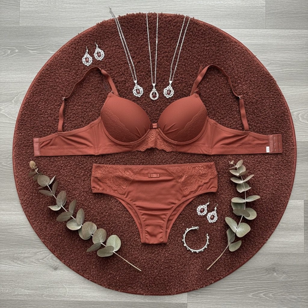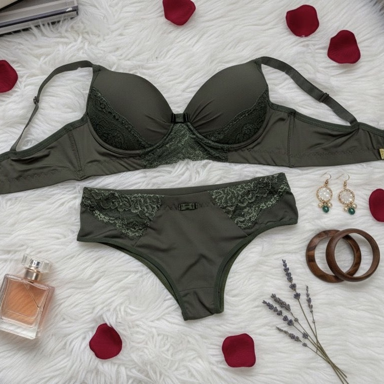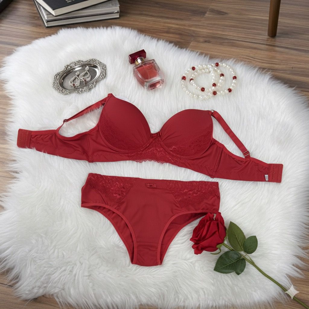 Composição Renda 90% poliamida 10% elastano Tecido 90% poliamida 10% elastano Bojo 60% poliuretano 40% poliester Forro 100% algodão Lingerie calcinha tradicional , bojo sem bolha Obs.: Não acompanha os acessorios